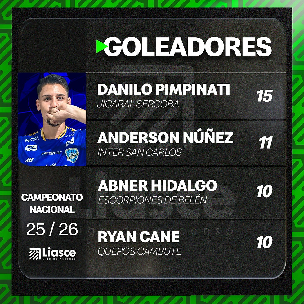 ⚽🏃♂Tabla de goleadores, Campeonato Nacional de la Liga de Ascenso 25 / 26 ⚽